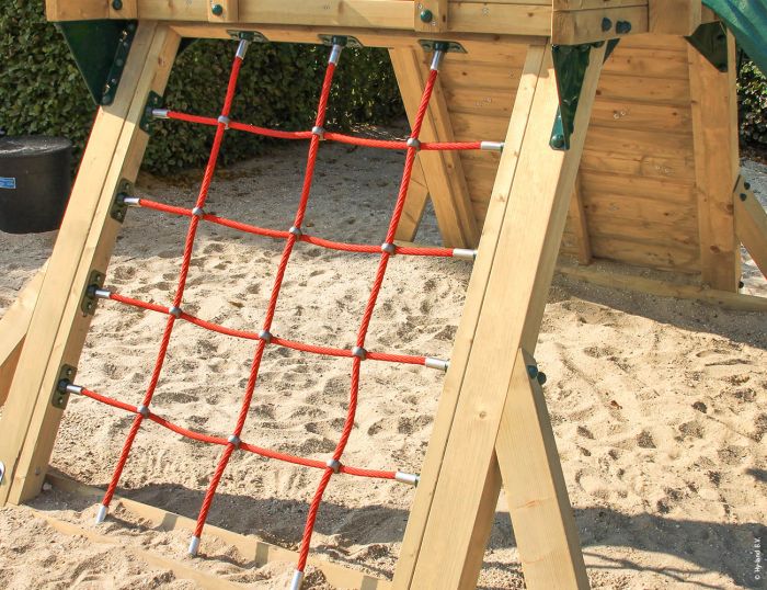 - Panel de trepa con cuerdas reforzadas con alma de acero, ideal para desarrollar habilidades motrices